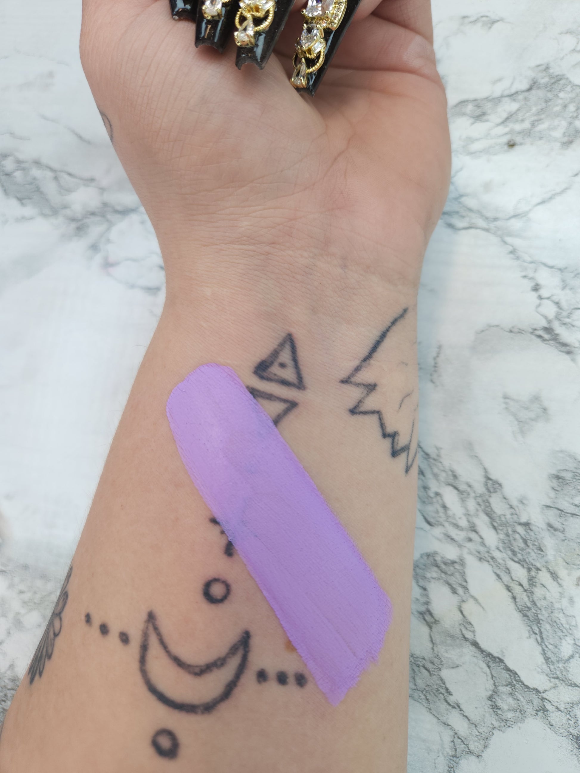 APPLY THE PRODUCT AS DESIRED USE IT FOR FULL ON BODY PAINT OR A SIMPLE LINER WHATEVER YOU HEART DESIRES