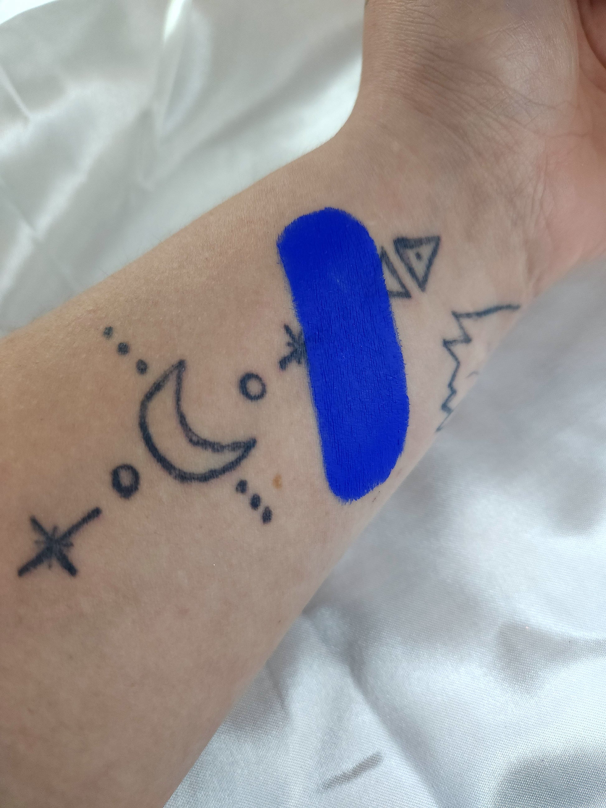 APPLY THE PRODUCT AS DESIRED USE IT FOR FULL ON BODY PAINT OR A SIMPLE LINER WHATEVER YOU HEART DESIRES
