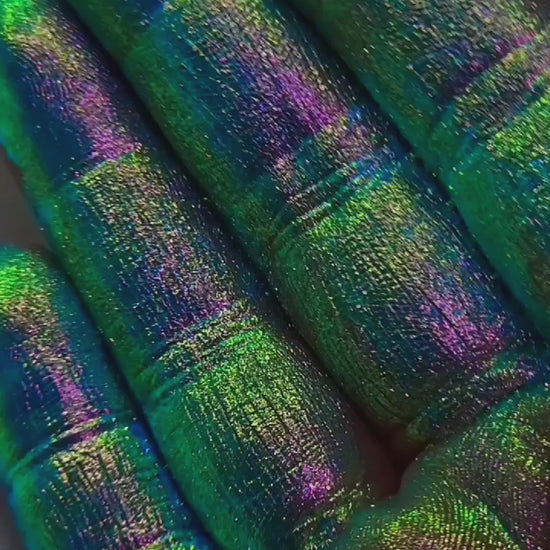 Much like a dew drop you find when the sun hits it just right, and you can see the colors like a prism. That is what Dew Drop Dream’s color looks like as you do your little dancy dance to show the shift of this amazing chromatic look that goes from green, hues of yellow, to purple. Now strike that pose, and strut babes!