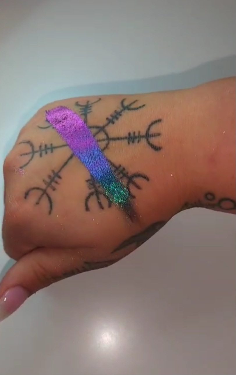 Add a mesmerizing touch to your makeup look with our Enchantress Call eyeshadow. This handmade, 36mm multichrome eyeshadow boasts a colorful impact with shifts of purple, pink, turquoise, and blue. The buttery and pigmented formula allows for buildable coverage, giving you endless possibilities for your eye look.