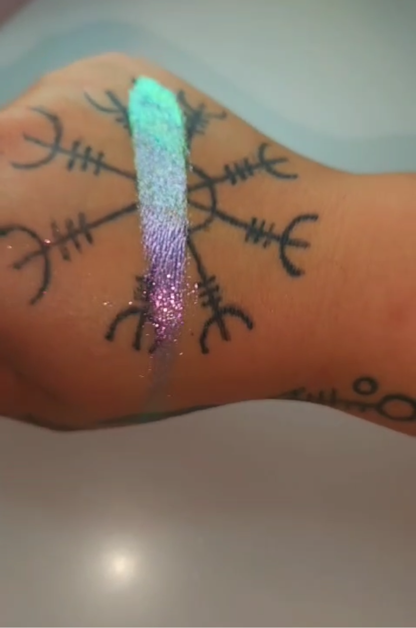 Unleash your fate with Fateful Fragrance! This handmade, multichrome eyeshadow single boasts a buttery texture, pigmented colors, and a colorful impact that shifts from purple to pink to blue to turquoise to yellow. With buildable coverage and a generous 36mm size, this is the perfect addition to your makeup collection. (Fate never looked so good!)