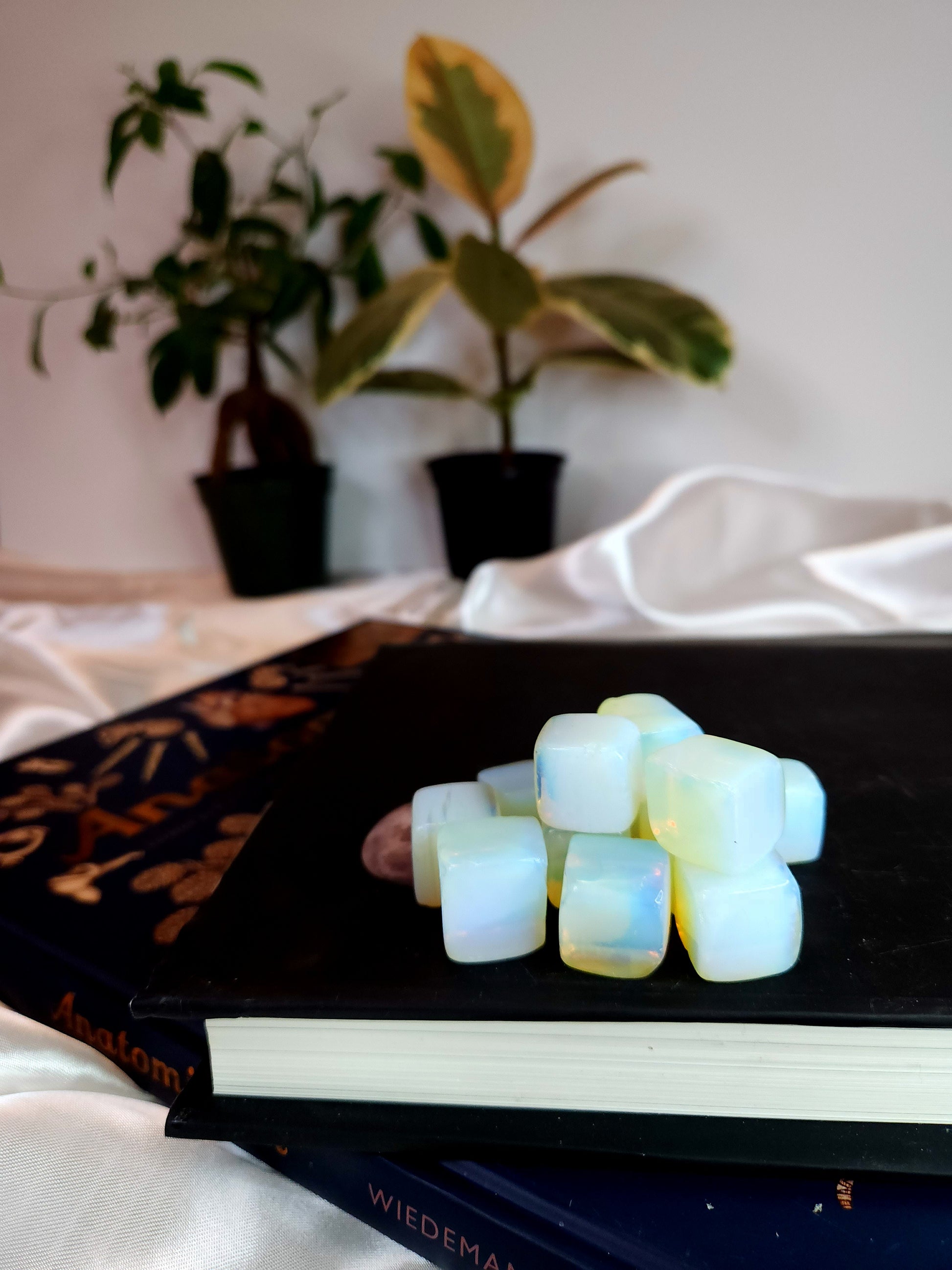 Opalite is subtle yet highly energetic. It is ideal for meditation. Opalite improves communication on all levels, especially the spiritual. It removes energy blockages of the chakras and meridians. Emotionally, Opalite helps by assisting during transitions of all kinds. It engenders persistence and gives us strength in verbalizing our hidden feelings. It can also help us to be successful in business.