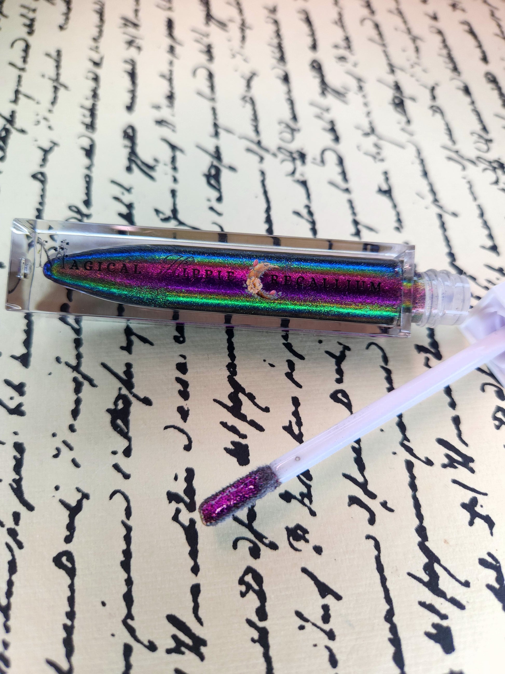 The multichrome shifts of pink, green, yellow, red and orange add a unique pop of color to your lips that will dazzle anyone who sees you. You'll love how easily the gloss glides on your lips without feeling sticky or tacky.