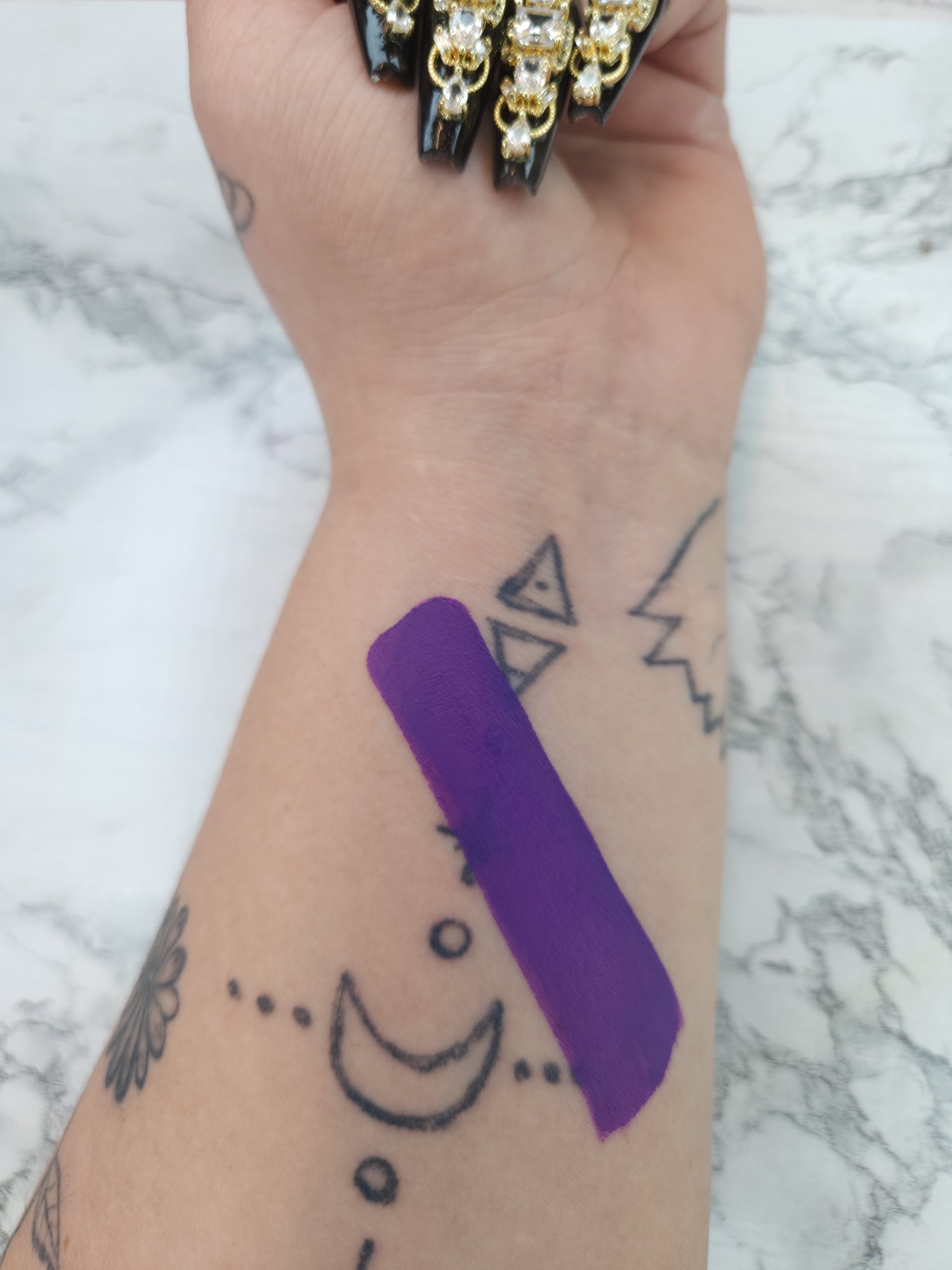 APPLY THE PRODUCT AS DESIRED USE IT FOR FULL ON BODY PAINT OR A SIMPLE LINER WHATEVER YOU HEART DESIRES